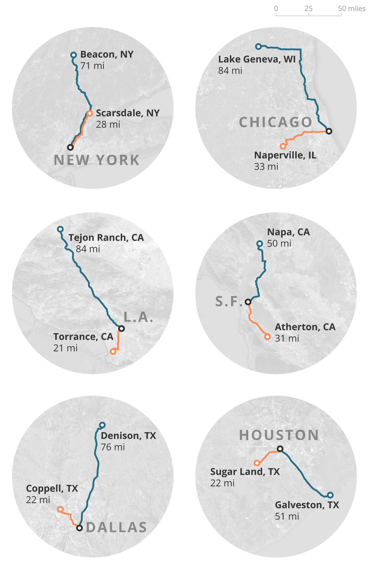 Our experts suggested places, far from major cities by current standards, that could become tomorrow's bedroom communities.